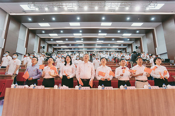 大會在全體黨員高聲合唱《沒有共產(chǎn)黨就沒有新中國》中圓滿落下帷幕。