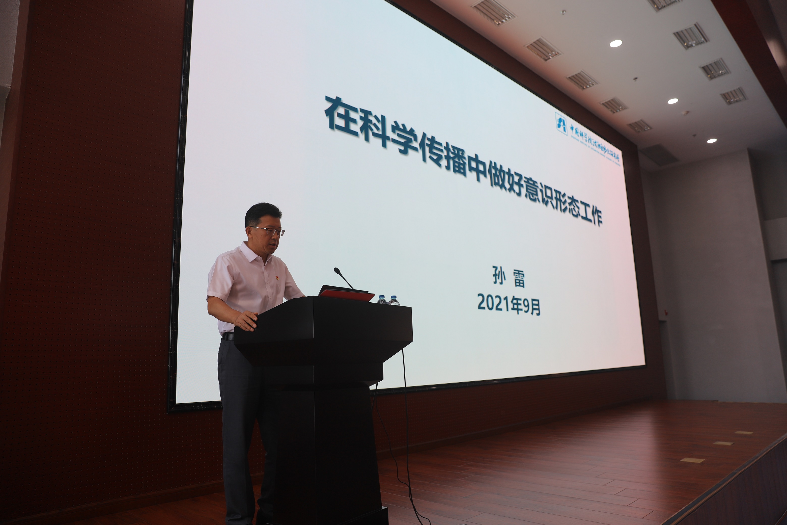 孫雷在題為《在科學(xué)傳播中做好意識(shí)形態(tài)工作》的專題報(bào)告中,強(qiáng)調(diào)了意識(shí)形態(tài)工作的重要性和總體要求,詳細(xì)介紹了中科院科學(xué)傳播工作機(jī)制,研究所科學(xué)傳播的整體情況和具體工作要求。隨后,他向各黨支部提出了做好意識(shí)形態(tài)工作和加強(qiáng)科學(xué)傳播工作的具體建議。