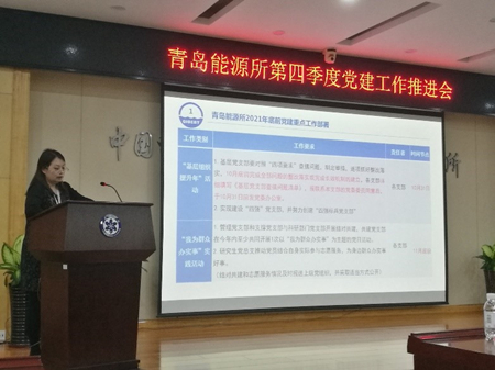 會上,黨委辦公室針對青島能源所《黨總支(黨支部)工作考核辦法》(修訂稿)進(jìn)行了說明并征求意見,全面梳理并部署了年底前的基層黨建重點工作。
