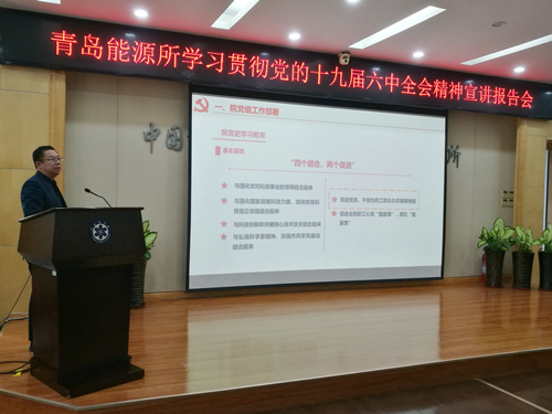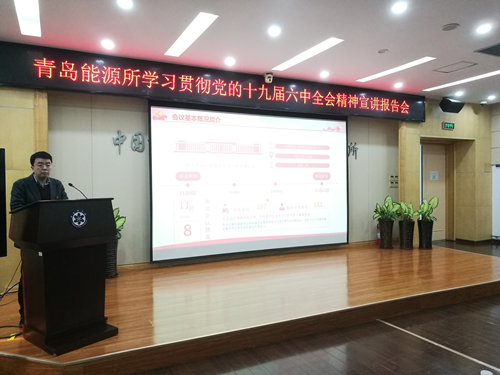 12月16日上午,青島能源所召開學(xué)習(xí)貫徹黨的十九屆六中全會精神宣講報告會,研究所黨員、團(tuán)員、民主黨派及無黨派人士、副處級以上領(lǐng)導(dǎo)干部、研究員、研究組組長等220余人參加了會議。會議由紀(jì)委書記李明主持。