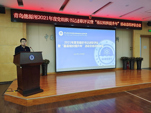 12月29日下午,青島能源所召開(kāi)2021年度黨組織書(shū)記述職評(píng)議暨“基層組織提升年”活動(dòng)總結(jié)評(píng)估會(huì)議。黨委書(shū)記彭輝,黨委副書(shū)記許輝、徐峰,黨委委員,紀(jì)委委員,黨總支、黨支部書(shū)記、支委委員及民主黨派、無(wú)黨派人士參加了會(huì)議。會(huì)議由彭輝同志主持。
