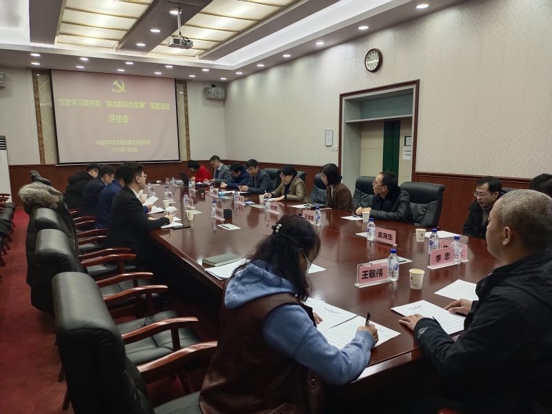 根據(jù)中國(guó)科學(xué)院黨史學(xué)習(xí)教育領(lǐng)導(dǎo)小組《關(guān)于做好黨史學(xué)習(xí)教育和“我為群眾辦實(shí)事”實(shí)踐活動(dòng)評(píng)估工作的通知》(直黨字[2021]38號(hào))要求,2022年1月4日,院黨史學(xué)習(xí)教育第十三指導(dǎo)組組長(zhǎng)姬蘭柱,沈陽(yáng)分院分黨組副書記毛志遠(yuǎn)一行到沈陽(yáng)生態(tài)所開(kāi)展黨史學(xué)習(xí)教育和“我為群眾辦實(shí)事”實(shí)踐活動(dòng)評(píng)估工作。沈陽(yáng)生態(tài)所黨委書記、副所長(zhǎng)金昌杰,黨委副書記、紀(jì)委書記郝欣,黨群辦公室主任、紀(jì)委副書記胡志斌,黨支部書記代表,以及黨群辦公室有關(guān)人員參加了評(píng)估工作。