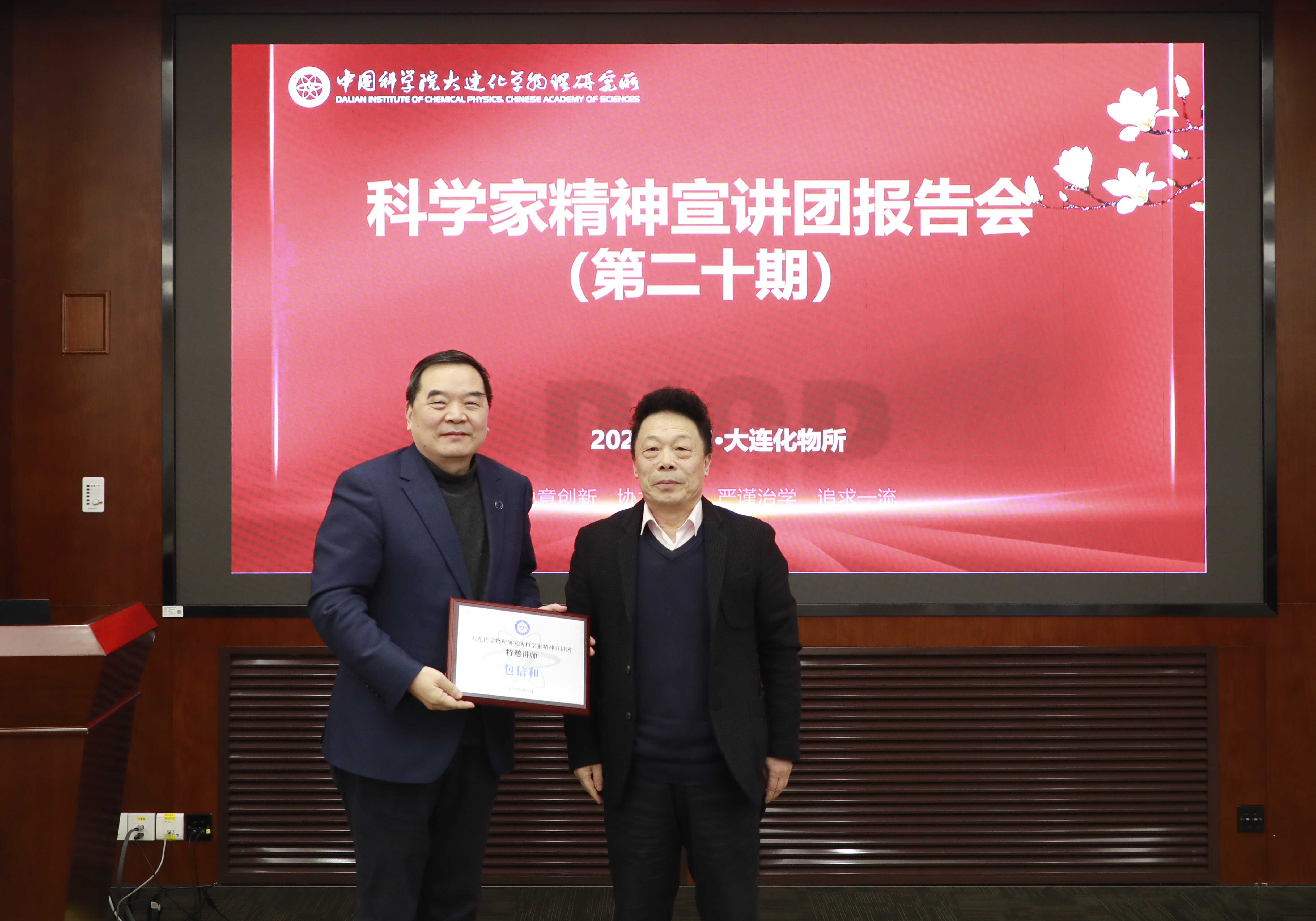 會上,金玉奇為包信和頒發(fā)了“大連化物所科學(xué)家精神宣講團特邀講師”獎牌,并作總結(jié)講話。他表示,包信和的報告精彩紛呈,內(nèi)容豐富,讓參會人員受益匪淺。包信和響應(yīng)國家號召,滿腔熱情回國發(fā)展,在大連化物所開展了二十余年的科技攻關(guān)工作,在能源和催化等領(lǐng)域取得了卓越的成就。包信和培養(yǎng)了一批優(yōu)秀的青年人才,并先后擔(dān)任沈陽分院、大連化物所、中國科技大學(xué)等多個單位的領(lǐng)導(dǎo)職務(wù),為中國科學(xué)院和大連化物所發(fā)展作出了不可磨滅的貢獻。全所科技工作者要以本次報告會為契機,以包信和為榜樣,學(xué)習(xí)他身上的高貴品質(zhì)和崇高的科學(xué)家精神。他強調(diào),要大力弘揚科學(xué)家精神,充分激發(fā)大連化物所科研人員勇攀科技高峰、搶占科技制高點的信心和勇氣;要傳承化物所精神,繼承大連化物所“急國家之所急,解國家之所需”的優(yōu)良傳統(tǒng),把個人學(xué)術(shù)追求融入國家發(fā)展大局;要樹立鮮明的價值導(dǎo)向,深入挖掘具有堅定理想信念和崇高價值追求,甘于奉獻、勇攀高峰的科學(xué)家典型,以身邊人講身邊事,形成齊心協(xié)力搶占科技制高點的濃厚創(chuàng)新氛圍。