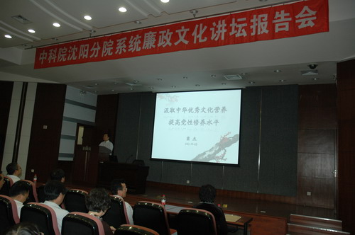 根據(jù)遼寧省直機關(guān)工委關(guān)于組織廉政文化進機關(guān)活動的通知要求,沈陽分院黨組、紀(jì)檢組于2011年5月25日在金屬所學(xué)術(shù)報告廳舉辦了沈陽地區(qū)首場廉政文化報告會,邀請省直機關(guān)紀(jì)工委書記、工委委員、行政監(jiān)察專員竇杰同志作了題為“汲取中華優(yōu)秀文化營養(yǎng),提升黨性修養(yǎng)水平”的報告。沈陽分院副院長、紀(jì)檢組長韓恩厚主持了報告會。沈陽地區(qū)各研究所、公司黨委、紀(jì)委領(lǐng)導(dǎo)、黨支部書記、科技、管理干部和研究生代表等200余人參加了報告會。