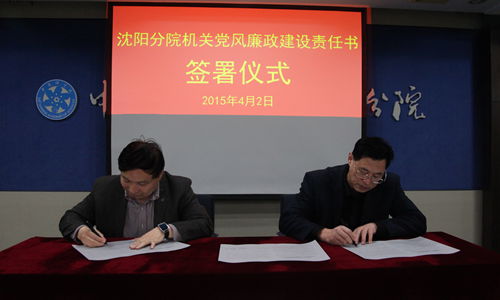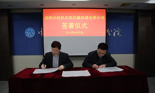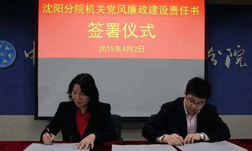 按照院黨組關(guān)于加強(qiáng)中科院黨風(fēng)廉政建設(shè)的總體部署,1月末沈陽(yáng)分院已組織分院院長(zhǎng)、黨組書記與系統(tǒng)各研究所所長(zhǎng)、黨委書記分別簽訂了個(gè)性化反腐倡廉建設(shè)責(zé)任書、黨風(fēng)廉政建設(shè)責(zé)任書。此次,分院領(lǐng)導(dǎo)班子成員與機(jī)關(guān)各部門負(fù)責(zé)人簽訂黨風(fēng)廉政建設(shè)責(zé)任書,是按照沈陽(yáng)分院黨風(fēng)廉政建設(shè)責(zé)任制實(shí)施細(xì)則的要求,扎實(shí)抓好“兩個(gè)責(zé)任”落實(shí)的又一具體措施。