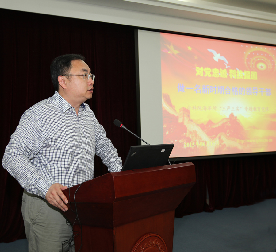 6月12日上午,海洋所召開處級以上領(lǐng)導(dǎo)干部大會,黨委書記王凡為參會人員講“三嚴三實”專題黨課。黨政領(lǐng)導(dǎo)班子成員、紀委委員、副處以上領(lǐng)導(dǎo)干部、實驗室正副主任、黨支部書記等近60人參加會議,會議由黨委副書記兼紀委書記楊紅生主持。