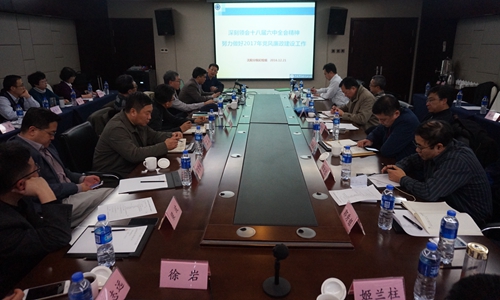 徐巖作了《深刻領(lǐng)會十八屆六中全會精神,努力做好2017年黨風(fēng)廉政建設(shè)工作》的報告,就學(xué)習(xí)貫徹《關(guān)于新形勢下黨內(nèi)政治生活的若干準(zhǔn)則》和《中國共產(chǎn)黨黨內(nèi)監(jiān)督條例》進(jìn)行了輔導(dǎo)解讀,并就科研院所基層紀(jì)委如何落實(shí)好兩個黨內(nèi)法規(guī)談了自身的思考,就分院紀(jì)檢組2017年的工作思路和重點(diǎn)工作進(jìn)行了部署。與會各單位紀(jì)委書記就如何更好地做好2017年反腐倡廉工作進(jìn)行了交流研討,提出了很好的意見和建議。