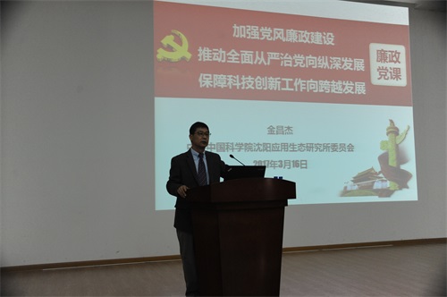 為深入貫徹落實黨的十八屆六中全會精神、中紀委十八屆七次全會精神,加強研究所黨風廉政建設,為新的一年科技創(chuàng)新工作良好開局切實發(fā)揮保駕護航作用,3月16日上午,中國科學院沈陽應用生態(tài)研究所黨委書記金昌杰在多功能廳作了題為“加強黨風廉政建設,推動全面從嚴治黨向縱深發(fā)展,保障科技創(chuàng)新工作向跨越發(fā)展”的專題報告,為沈陽生態(tài)所全體黨員、職工上了一堂廉政黨課。沈陽生態(tài)所班子成員、黨委委員、紀委委員、在編人員、離退休、研究生黨支部書記近180人參加本次報告會。