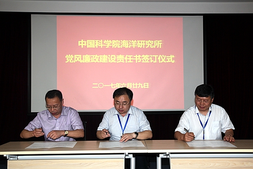 6月29日上午,在慶祝建黨96周年暨2016-2017年度黨建工作表彰會議上,海洋研究所舉行了黨風(fēng)廉政建設(shè)責(zé)任書簽訂儀式。所長王凡、黨委書記王輝、副所長李超倫、紀委書記畢偉出席簽訂儀式,科研、管理與支撐骨干人員等150余人參加儀式。儀式由副所長李超倫主持。