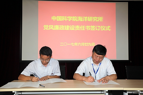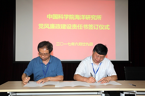 根據(jù)《中國科學(xué)院海洋研究所黨風(fēng)廉政建設(shè)責(zé)任制實施細則》規(guī)定,黨風(fēng)廉政建設(shè)責(zé)任書實施逐級簽訂,體現(xiàn)個性化崗位責(zé)任,管理與支撐部門負責(zé)人、研究室/中心負責(zé)人、研究組負責(zé)人均需與分管所領(lǐng)導(dǎo)簽訂《黨風(fēng)廉政建設(shè)責(zé)任書》或《反腐倡廉建設(shè)責(zé)任書》;管理與支撐部門人員和研究組人員也需與部門負責(zé)人簽訂《廉潔從業(yè)承諾書》。此項工作將由監(jiān)審處負責(zé)在近期內(nèi)完成。