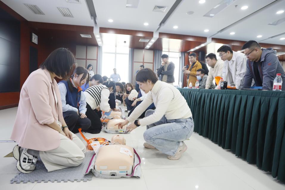 在實操訓(xùn)練過程中,指導(dǎo)老師耐心解答了與會人員的問題,細心指導(dǎo)大家如何臨危不亂,為緊急病患爭取“黃金時間”。大家表示受益匪淺,不僅掌握了AED的正確實操技能,還提升了自救互救應(yīng)急意識和能力。