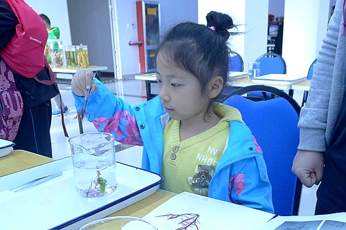 一位小學(xué)生正在制作藻類(lèi)標(biāo)本