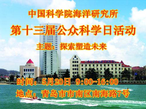 5月20日,中國科學(xué)院海洋研究所、中國海洋湖沼學(xué)會將舉辦主題為“探索塑造未來”的公眾科學(xué)日活動,向社會公眾展示海洋科技創(chuàng)新最新成果及動態(tài),普及海洋科學(xué)知識,歡迎島城市民零距離體驗海洋科學(xué)魅力。