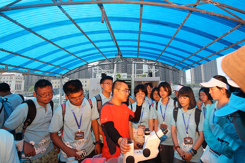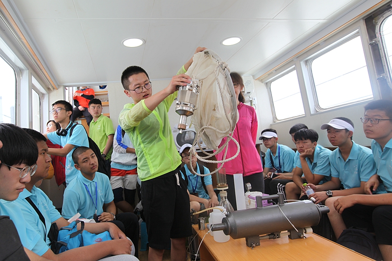 海上科學(xué)考察實(shí)踐活動(dòng)共分四個(gè)板塊,分別是乘坐“創(chuàng)新”號(hào)科考船進(jìn)行海上調(diào)查作業(yè),在碼頭停靠的“海鷗”號(hào)科考船上開展浮游植物與富營(yíng)養(yǎng)化、浮游動(dòng)物與海洋生態(tài)系統(tǒng)食物鏈、食物網(wǎng)以及海洋污損生物知識(shí)講解。