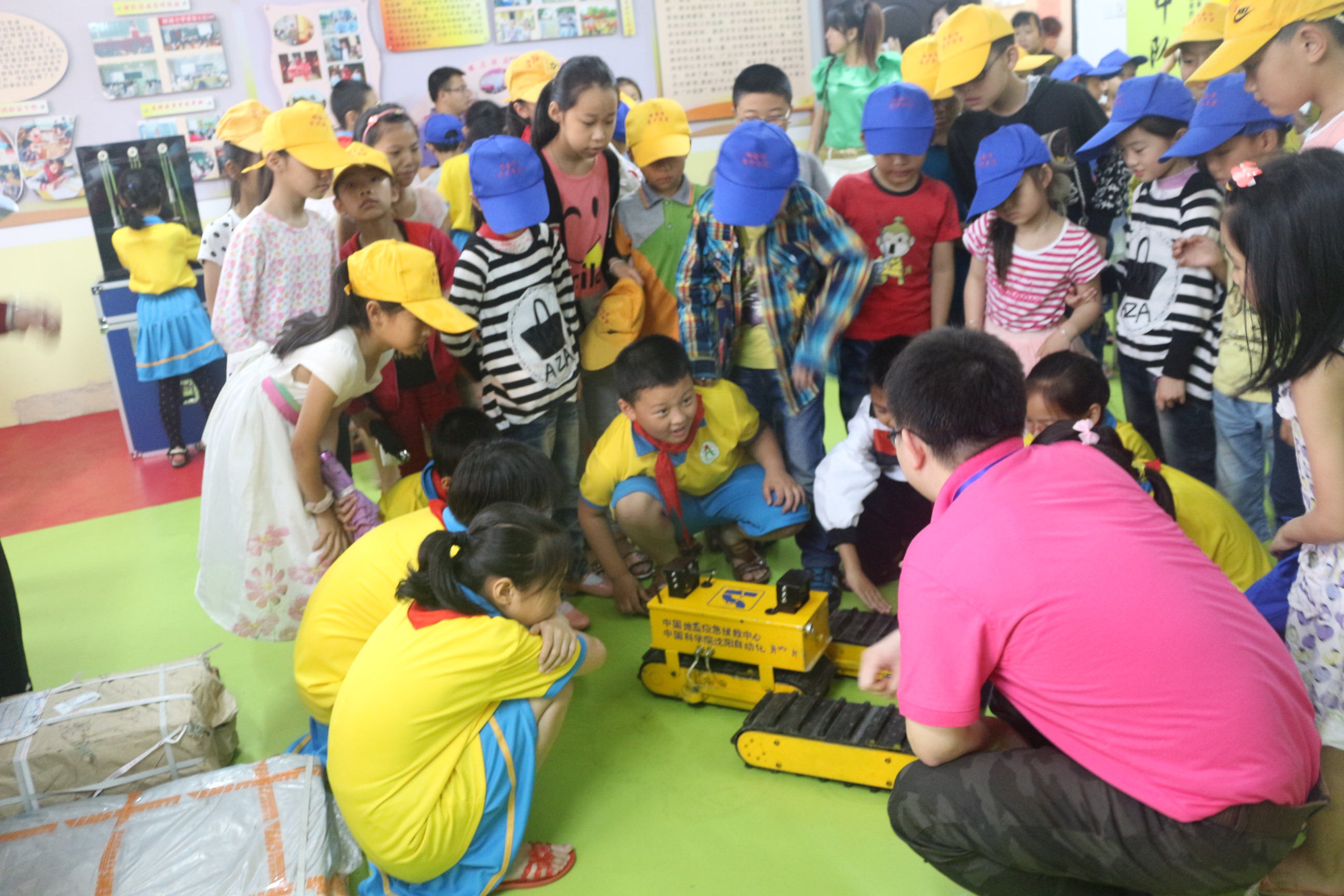 近日,由中國科學院沈陽自動化研究所研制的廢墟搜救可變形機器人參加了“科技列車贛南行暨2014年江西省科技活動周”科普活動。科研人員攜該款機器人深入多所學校進行科普展示,向公眾普及地震救援機器人知識。