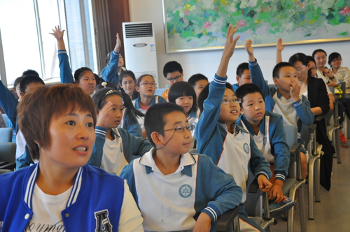 活動現(xiàn)場,小朋友們時而睜大雙眼專心聆聽,時而張大嘴巴驚訝不已,時而高舉小手兒爭先恐后回答問題和上臺參與……生動、有趣又不失嚴(yán)謹(jǐn)?shù)膱蟾嫘问桨选案叽笊稀钡目茖W(xué)知識真正地帶到了孩子們的身邊。
