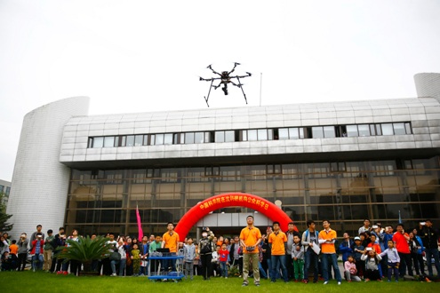 啟動(dòng)儀式后,在沈陽自動(dòng)化所園區(qū)花壇舉行了一場(chǎng)飛行表演。沈陽自動(dòng)化所自主研制的六軸飛行器擔(dān)任了這次表演的主角。在志愿者操作下,飛行器穩(wěn)穩(wěn)地起飛,在空中旋繞飛行。參觀者興趣高昂,將花壇團(tuán)團(tuán)圍住,興致勃勃地觀看這場(chǎng)表演。