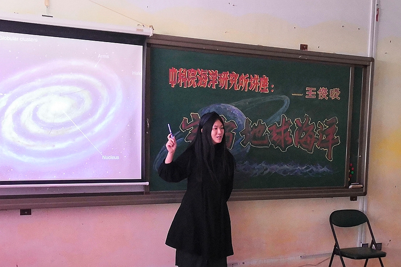 海洋所博士實(shí)踐團(tuán)的劉姍姍、王俊琰分別為青島格蘭德學(xué)校、愛之帆學(xué)校的同學(xué)們帶去了“赤潮也怕’吃土’”“宇宙、地球、海洋”等科普講座,并與同學(xué)們進(jìn)行了海洋知識(shí)有獎(jiǎng)互動(dòng)。