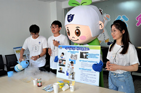 在云游青能所環(huán)節(jié),科研人員認(rèn)真準(zhǔn)備了各類(lèi)科學(xué)實(shí)驗(yàn),內(nèi)容涉及生物、化學(xué)化工、材料等科學(xué)知識(shí)。研究所公眾科學(xué)日吉祥物“清清”也在本次活動(dòng)中首次亮相,公眾在“清清”帶領(lǐng)下探秘實(shí)驗(yàn)室,包括小小鋰電池潛力無(wú)限大,瓶中彩虹,蛋白質(zhì)的變形記,網(wǎng)紅“液氮冰淇淋”背后的奧秘,金谷棒勇闖火焰山、八卦爐內(nèi)煉烏丹,小小“魔術(shù)藻”的“跨界”傳奇,“高個(gè)子”和“矮胖子”??蒲腥藛T通過(guò)實(shí)驗(yàn)展示和原理解讀將科學(xué)知識(shí)傳遞給公眾,直觀形象、生動(dòng)有趣。