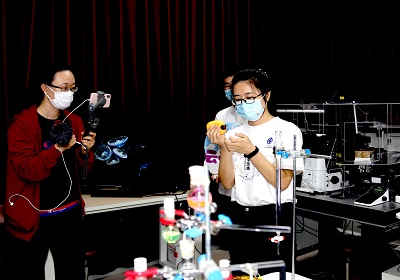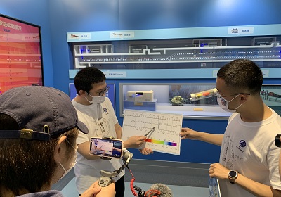 “硬核展館來(lái)了!帶你穿梭DICP70年!”場(chǎng)次中,主播通過(guò)對(duì)大連化物所走過(guò)的重要?dú)v史足跡的回顧和對(duì)張大煜和張存浩兩位先生的感人事跡的講述,抒發(fā)了研究所以國(guó)家需求為導(dǎo)向,銳意創(chuàng)新、協(xié)力攻堅(jiān)的精神與情懷。“走近世界上最亮的極紫外光源、認(rèn)識(shí)環(huán)保與食品安全的先鋒衛(wèi)士”場(chǎng)次介紹了大科學(xué)裝置大連光源的背景、原理和應(yīng)用,通過(guò)形象生動(dòng)的互動(dòng)展示了儀器分析在食品、環(huán)境、安全等領(lǐng)域的應(yīng)用。在“閃閃熒光點(diǎn)亮細(xì)胞”場(chǎng)次,主播通過(guò)美麗神奇的熒光現(xiàn)象的展示,帶觀眾走進(jìn)了分子探針和熒光成像下的奇妙生命世界。在“來(lái)分子反應(yīng)動(dòng)力學(xué)國(guó)家重點(diǎn)實(shí)驗(yàn)室,給分子原子拍照片、拍電影”場(chǎng)次,通過(guò)對(duì)飛秒、納米等概念的講解和對(duì)飛秒實(shí)驗(yàn)室和掃描隧道顯微鏡等儀器設(shè)備的觀察,讓觀眾了解了科學(xué)家如何捕捉微觀世界的反應(yīng)過(guò)程。