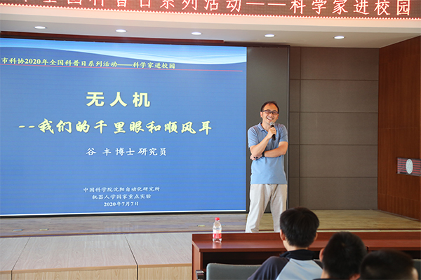 本次活動(dòng)邀請(qǐng)到中科院沈陽(yáng)自動(dòng)化所研究員谷豐,為同學(xué)們帶來(lái)主題為“無(wú)人機(jī)——我們的千里眼和順風(fēng)耳”的科普?qǐng)?bào)告。谷豐分別從什么是無(wú)人機(jī)、無(wú)人機(jī)的發(fā)展歷史、無(wú)人機(jī)能做什么以及無(wú)人機(jī)的未來(lái)四方面為同學(xué)們進(jìn)行了生動(dòng)形象的講解。他利用自己在科研一線工作中積累的豐富知識(shí),以淺顯通俗的語(yǔ)言和生動(dòng)形象的圖片、視頻、動(dòng)畫(huà)等,深入淺出地為青少年講述無(wú)人機(jī)的科學(xué)知識(shí)、技術(shù)成果和未來(lái)發(fā)展趨勢(shì),開(kāi)闊了同學(xué)們的視野,提高了科學(xué)素養(yǎng),激發(fā)了探索無(wú)人機(jī)的濃厚興趣。