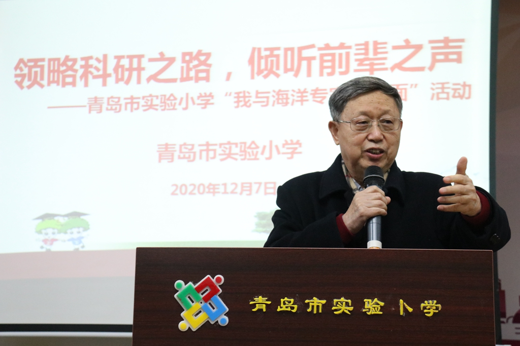 12月7日,海洋所胡敦欣院士、海洋所青促會會長胡石建研究員應(yīng)邀赴青島市實驗小學(xué)開展海洋科普活動,市實驗小學(xué)校長梁景萱、副校長胡繁華及百余名師生現(xiàn)場參與活動。