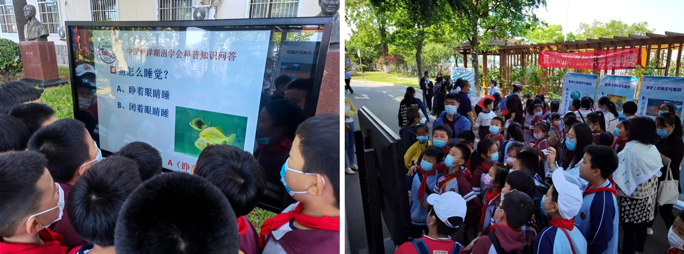 在海洋湖沼知識(shí)有獎(jiǎng)問(wèn)答環(huán)節(jié),圍滿了參加活動(dòng)的孩子和家長(zhǎng)。你問(wèn)我答,在與工作人員的互動(dòng)中,同學(xué)們學(xué)習(xí)了海洋湖沼知識(shí),也增進(jìn)了公眾及青少年學(xué)習(xí)海洋知識(shí)的熱情。