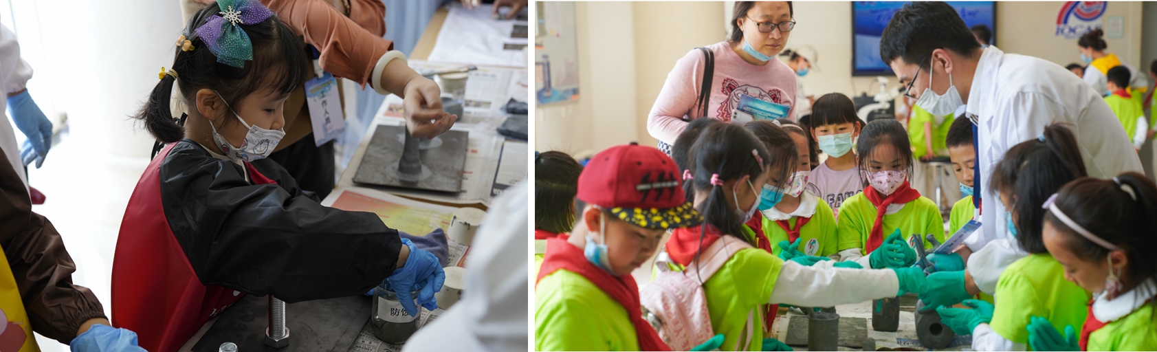 在海洋科學(xué)實(shí)驗(yàn)展示環(huán)節(jié)中,公眾在顯微鏡下觀看“吃”塑料的海洋微生物,學(xué)習(xí)了藻華知識(shí),進(jìn)行了赤潮去除模擬實(shí)驗(yàn),了解了海洋腐蝕的電化學(xué)原理并動(dòng)手實(shí)踐了海洋腐蝕防護(hù)實(shí)驗(yàn)??蒲腥藛T通過(guò)實(shí)驗(yàn)展示解讀科學(xué)原理,傳遞科學(xué)知識(shí)。