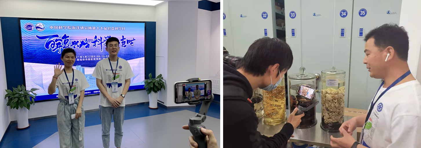 本次公眾科學(xué)日活動(dòng)采用線上+線下相結(jié)合的方式,通過(guò)嗶哩嗶哩平臺(tái)全程直播。直播中,公眾跟隨兩位主持人在線云游海洋所,體驗(yàn)“藍(lán)色”魅力,并與科研人員一起通過(guò)科學(xué)實(shí)驗(yàn)“探秘海洋”,進(jìn)行了生動(dòng)有趣的海洋科普知識(shí)問(wèn)答,開(kāi)啟了一場(chǎng)“奇妙海洋探秘之旅”。