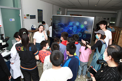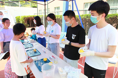 在“妙趣小實驗”環(huán)節(jié),設(shè)置了8個與日常生活相關(guān)的創(chuàng)意小實驗,包括 “變廢為寶育蘑菇”“這種蛋白質(zhì)很神秘”“細(xì)菌吐‘絲’用處大”“神奇火旋風(fēng)”“會畫畫的茶皂素”“泡泡的秘密”“真菌無處不在”“用‘光’抓住小細(xì)胞” ?;顒又驹刚邆兓砜茖W(xué)主播,講解和動手展示結(jié)合將科學(xué)知識傳遞給公眾,直觀形象、生動有趣。來參觀的學(xué)生們通過動手實驗,在“玩”的過程中學(xué)到了課堂上、書本里所學(xué)不到的科學(xué)知識,親身體會科學(xué)的神奇,開闊了眼界,激發(fā)了探索科學(xué)奧秘的興趣。