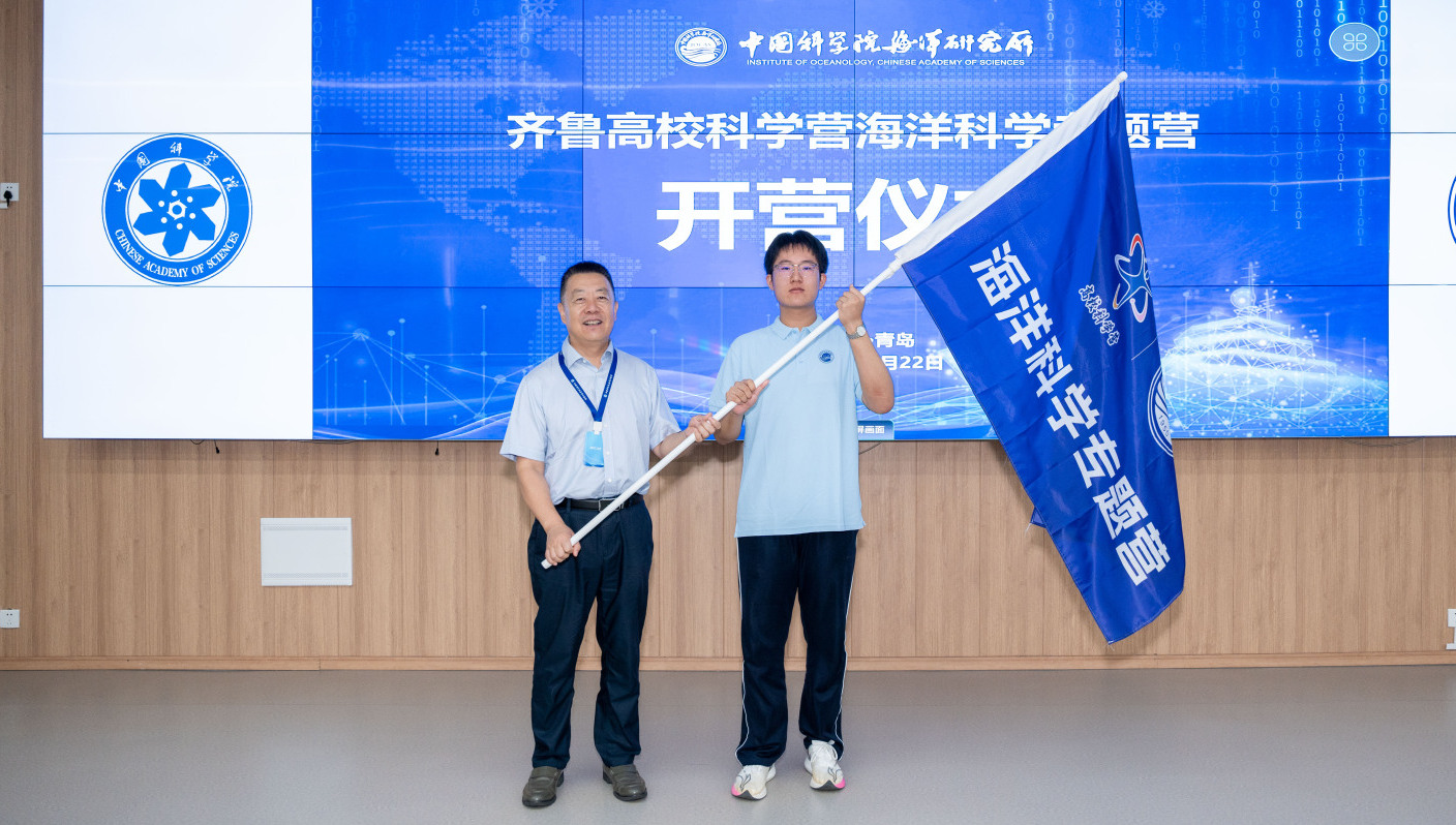 開營儀式上,畢偉代表承辦單位介紹了海洋科學專題營的辦營歷史及特色,并為營員代表授旗。他鼓勵營員們在本次科學營活動中多交流、多實踐、多思考,努力培養(yǎng)善于觀察的能力、敢于行動的魄力和持之以恒的精神,在活動中學習科學知識,在實踐中感悟海洋魅力,并期待營員們未來加入海洋科技創(chuàng)新的隊伍。