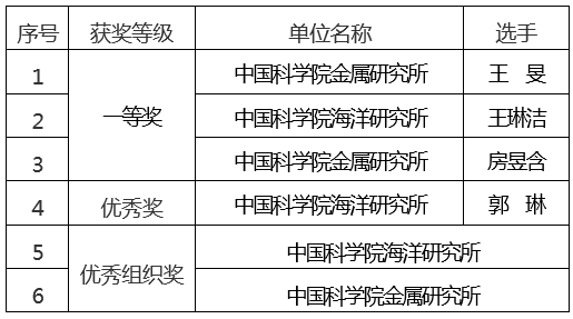 近日,中國(guó)科學(xué)院公布2025年中國(guó)科學(xué)院科普講解大賽獲獎(jiǎng)名單。沈陽(yáng)分院系統(tǒng)單位3位選手榮獲一等獎(jiǎng)(全院共10項(xiàng)),分別為金屬所王旻、房昱含,海洋所王琳潔。海洋所郭琳榮獲優(yōu)秀獎(jiǎng)。金屬所、海洋所獲評(píng)優(yōu)秀組織獎(jiǎng)。
