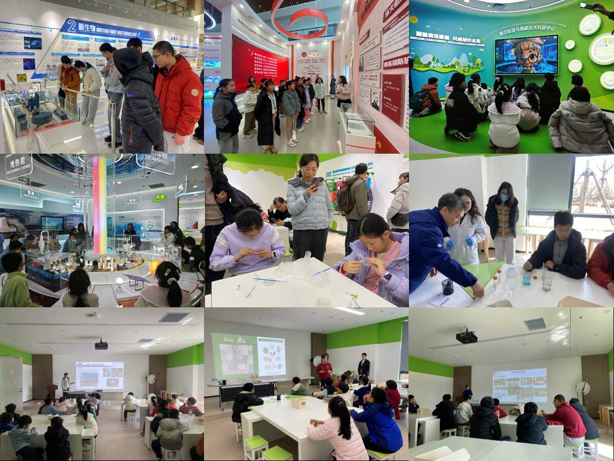 活動中,家屬們在工作人員引導(dǎo)下,首先參觀了所展廳和科學(xué)家精神教育基地,通過了解研究所發(fā)展歷程、聆聽科學(xué)家故事,對家人所從事的科研工作有了初步認識。隨后,家屬們走進本次活動的重點體驗場所——清潔能源與綠碳技術(shù)科普中心,近距離接觸各類科研展品與互動演示裝置,在沉浸式體驗中感受綠色能源與低碳技術(shù)的獨特魅力。參觀體驗結(jié)束后,根據(jù)三個學(xué)齡段的認知特點,分別設(shè)計了差異化的科普課程與動手實驗環(huán)節(jié)。海洋碳匯與能源微生物研究組碩士研究生滕培晨為低年級組帶來《守護藍色星球家園:了解并應(yīng)對二氧化碳的挑戰(zhàn)》,一碳生物技術(shù)研究中心范勇副研究員為高年級組講授《帶著微藻去火星》,系統(tǒng)集成工程中心木質(zhì)纖維綠碳材料項目部李濱研究員面向初中組講授了《植物纖維——源于自然的萬能零碳資源》。授課老師結(jié)合自身研究領(lǐng)域,用通俗易懂的語言講解科學(xué)原理,并帶領(lǐng)孩子們動手參與實驗操作,在實踐中激發(fā)探索興趣。