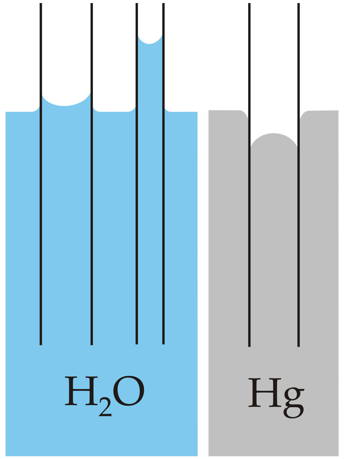 水和水銀的毛細(xì)現(xiàn)象