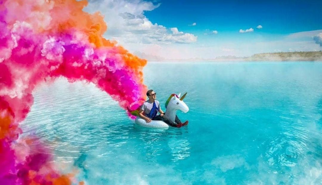 這個湖會火起來少不了網(wǎng)紅的助力,外國社交網(wǎng)絡(luò)Instagram上有特別多網(wǎng)紅推薦,由此引來一波又一波游客前去打卡合照。有特意帶上各種戲水工具的朋友: