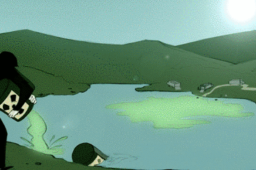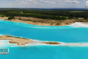 而湖面這美麗的綠松石色,也全是有毒廢物元素之間化學(xué)反應(yīng)的結(jié)果。