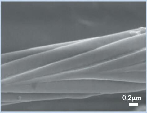 進(jìn)一步把一根剛毛放大來看,可以看到剛毛上又分布著螺旋狀的納米級凹坑。