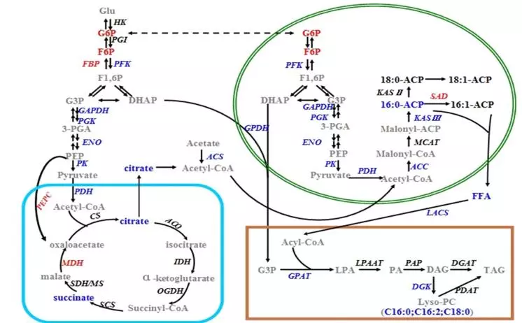 圖3 黃絲藻細胞中心碳代謝流的調(diào)節(jié)模型