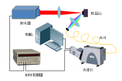 激光器產(chǎn)生激光束,經(jīng)過透鏡匯聚之后,在樣品表面就可以激發(fā)出等離子體。通過透鏡對產(chǎn)生的等離子體發(fā)射光譜信號耦合到光纖,并通過光纖將等離子體發(fā)射信號傳輸給光譜儀,光譜儀將采集的光譜數(shù)據(jù)傳輸給電腦進(jìn)行處理。此外,由于所產(chǎn)生的等離子體生命周期短,一般是幾十納秒到幾十微秒,因此,需要采用時序控制器來控制激光器與光譜儀觸發(fā)及采集上同步。