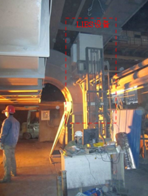 首先,它可以完成金屬成分的在線分析檢測。早在2014年,中國科學(xué)院沈陽自動化研究所孫蘭香團(tuán)隊(duì)成功實(shí)現(xiàn)了LIBS在煉鋼廠的示范應(yīng)用,并在國際上首次實(shí)現(xiàn)了40噸級鋼包的鋼水成分的在線測量,現(xiàn)場設(shè)備如圖所示。