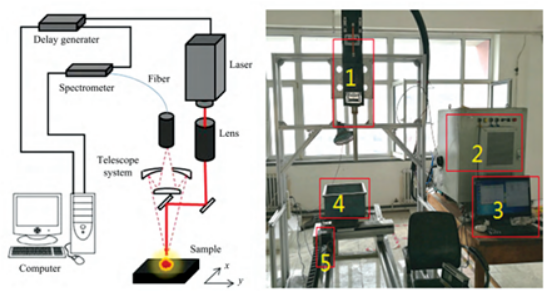 水泥成分檢測LIBS分析系統(tǒng)(1、激光器及光學(xué)系統(tǒng);2、控制柜;3、計(jì)算機(jī);4、料盒;5、二維電動平移臺