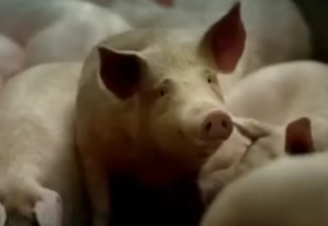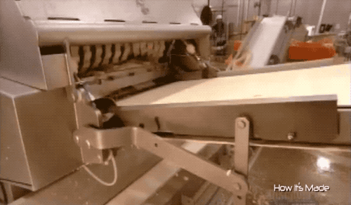 傳送帶會(huì)把肉送到一個(gè)長長的自動(dòng)刀刃上去皮,豬皮就掉進(jìn)另一條傳送帶上...