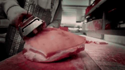 快速跳過可能會(huì)引起不適的屠宰過程,我們直接進(jìn)入對(duì)生鮮豬肉的處理。用手持剔皮機(jī)把豬皮削下來...