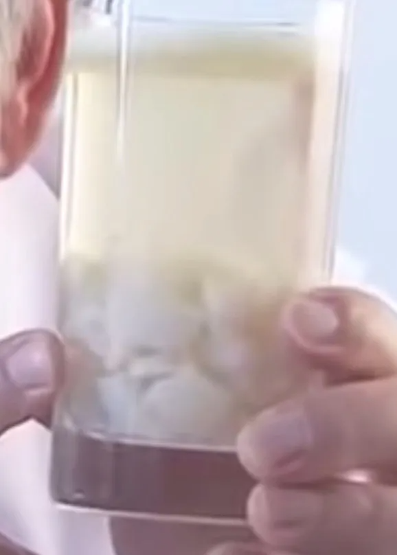 濃縮冷卻后,擠出面條狀的膠體。