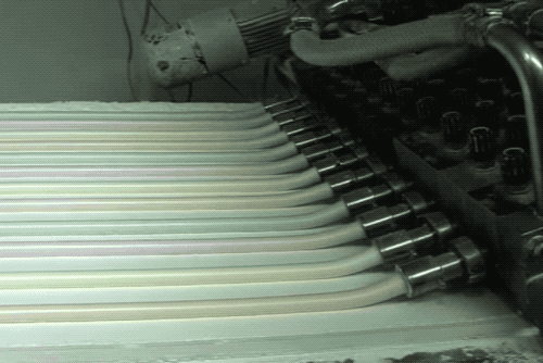 如果是制作多色棉花糖,那么利用多口灌裝就行了。這種多管灌裝的我們在《小時(shí)候,誰不想擁有一塊自己的動(dòng)物橡皮擦》中也寫過類似的機(jī)器原理: