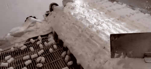 滾啊滾,抖落身上多余的粉...再經(jīng)過質(zhì)檢和包裝,最后就是我們內(nèi)斂樸實(shí)的甜蜜擔(dān)當(dāng)——棉花糖啦~