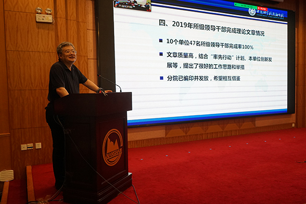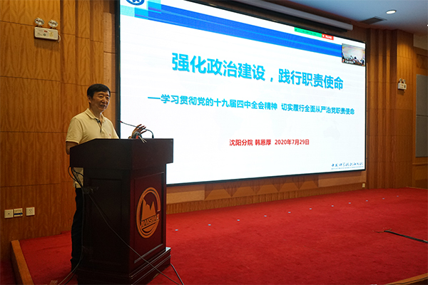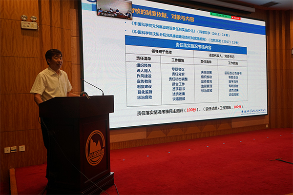 在領(lǐng)導(dǎo)班子建設(shè)模塊,于海斌通報了2019年度分院系統(tǒng)領(lǐng)導(dǎo)班子與領(lǐng)導(dǎo)人員年度考核、黨建工作年度考核,各單位2019年理論中心組學(xué)習(xí),2019年領(lǐng)導(dǎo)干部完成理論文章及參加雙重組織生活會等情況,并就落實安全保密管理責任工作進行了部署;沈陽分院分黨組副書記、紀檢組組長郭秀銀通報了2019年度分院系統(tǒng)單位黨風(fēng)廉政建設(shè)責任檢查考核結(jié)果,并就2019年度分院系統(tǒng)各單位紀委書記考核情況進行了通報;韓恩厚作了題為“強化政治建設(shè),踐行職責使命”的反腐倡廉專題報告,報告從貫徹落實黨的十九屆四中全會精神、分院系統(tǒng)已巡視發(fā)現(xiàn)的共性問題、學(xué)習(xí)院黨組修訂印發(fā)的兩項制度等三個方面,系統(tǒng)全面地對當前黨風(fēng)廉政建設(shè)的重點工作進行了闡述與解讀。