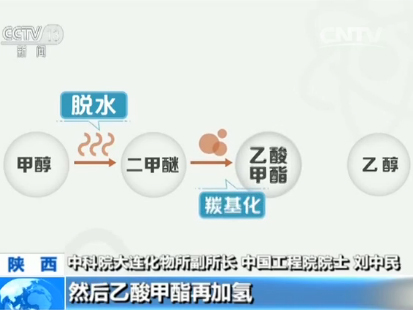 中科院大連化物所副所長 中國工程院院士 劉中民:我們這個技術(shù)路線是通過煤先做成甲醇,再接著轉(zhuǎn)化成乙醇。它的技術(shù)核心實際上是,把甲醇、把二甲醚和一氧化碳反應(yīng)做成乙酸甲酯,然后乙酸甲酯再加氫變成乙醇和甲醇,最核心的還是兩個過程的催化劑。這個催化劑要求高效,長期穩(wěn)定。原來世界上沒有過類似的。