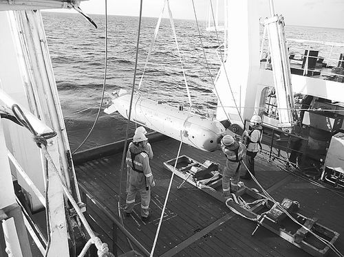 技術人員將潛水器回收至甲板