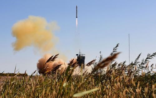 2015年10月7日12時13分,我國在酒泉衛(wèi)星發(fā)射中心用長征二號丁運(yùn)載火箭成功將1組“吉林一號”商業(yè)衛(wèi)星發(fā)射升空。(趙鵬攝/新華社)
